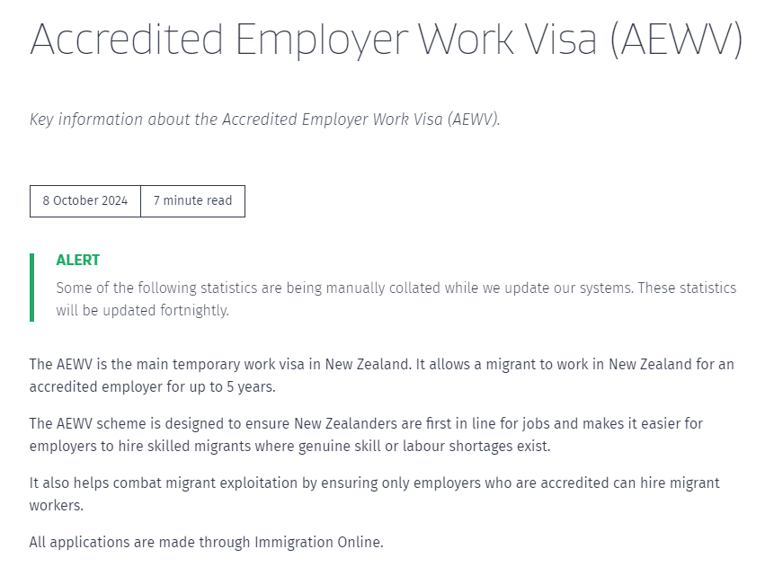 认证雇主工签(AEWV)是新西兰的主要临时工签,旨在确保新西兰人优先获得工作机会,并使雇主在存在真正技术工人或劳动力短缺的情况下更容易雇用技术移民。