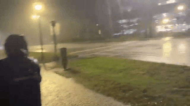 狂风暴雨中,一男子仍坚持慢跑。