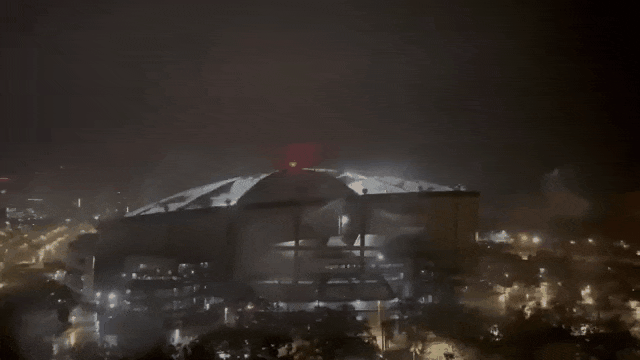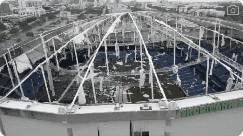 有34年历史的圣彼得堡 Tropicana Field 体育场屋顶,说掀就掀。(此处被用作急救人员和国民警卫队部队的避难所)