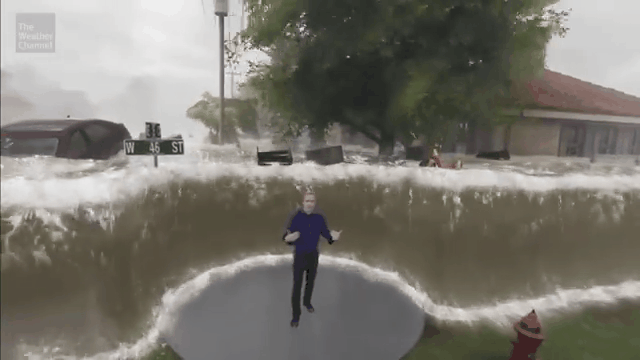 都说佛罗里达不养闲人,飓风登陆当天有记者还拍到: