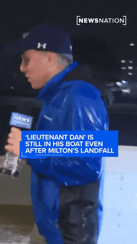 该男子被网友称为“丹中尉”,因飓风仍留在船上而走红网络,晚上11点过有记者半夜去探访,发现他仍安全活着。
