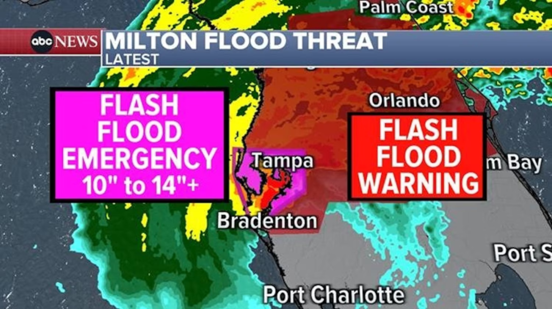 10月9日(昨晚),美东时间晚上9点,飓风“海伦妮”刚走没几天,飓风米尔顿又以3级飓风强势登陆佛罗里达西海岸。