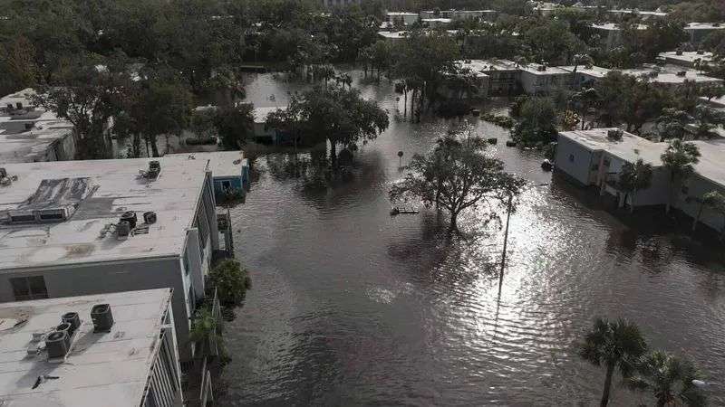 报道称,在佛州的St. Petersburg,16小时累计降水量达到16英寸(406.4毫米),其中单小时最大降水量为5英寸(127毫米)。