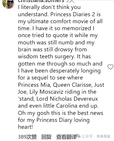 天呐,这对我这个《公主日记》死忠粉来说简直是天大的好消息啊!”