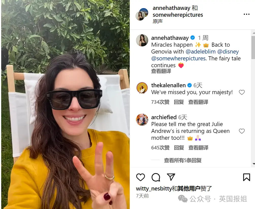 收藏外网热议!安妮·海瑟薇官宣《公主日记3》,时隔20年女王闪耀回归!网友:我都老了她还是那么美!