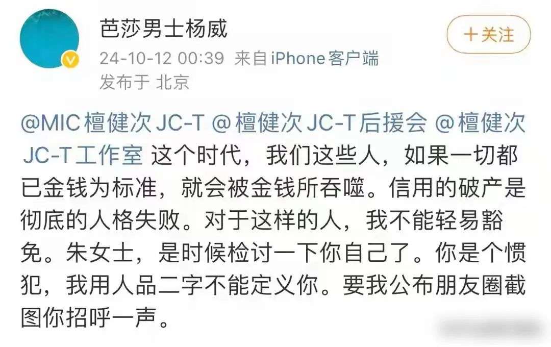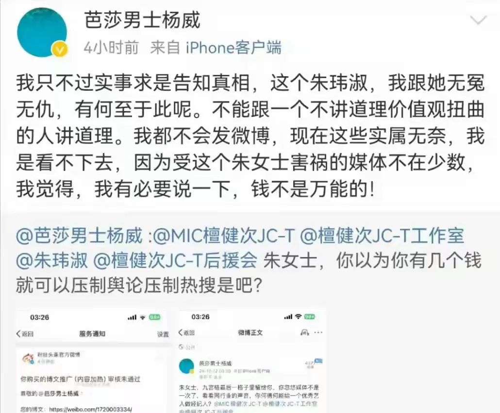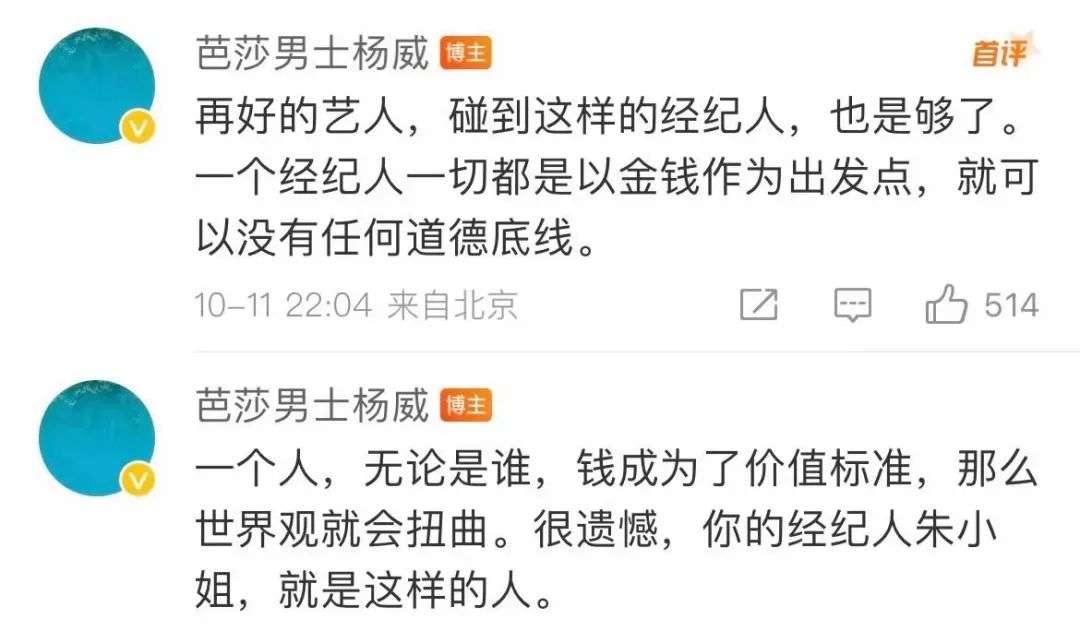 而且从他说的话来看,檀健次的经纪人应该是拿檀健次“卖了”不少钱,而粉丝最讨厌的就公司或者经纪人不爱惜偶像的羽毛,因此杨威这番控诉后,很多檀健次的粉丝已经开始向檀健次经纪人要说法了。