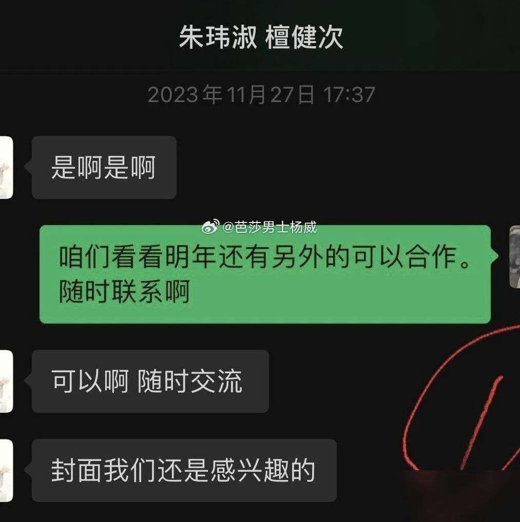 从聊天记录来看,该主编在2023年就已经开始联系檀健次的经纪人了,希望能与之合作,但是檀健次的经纪人多次以檀健次没有时间,或者各种原因对该主编进行推脱。