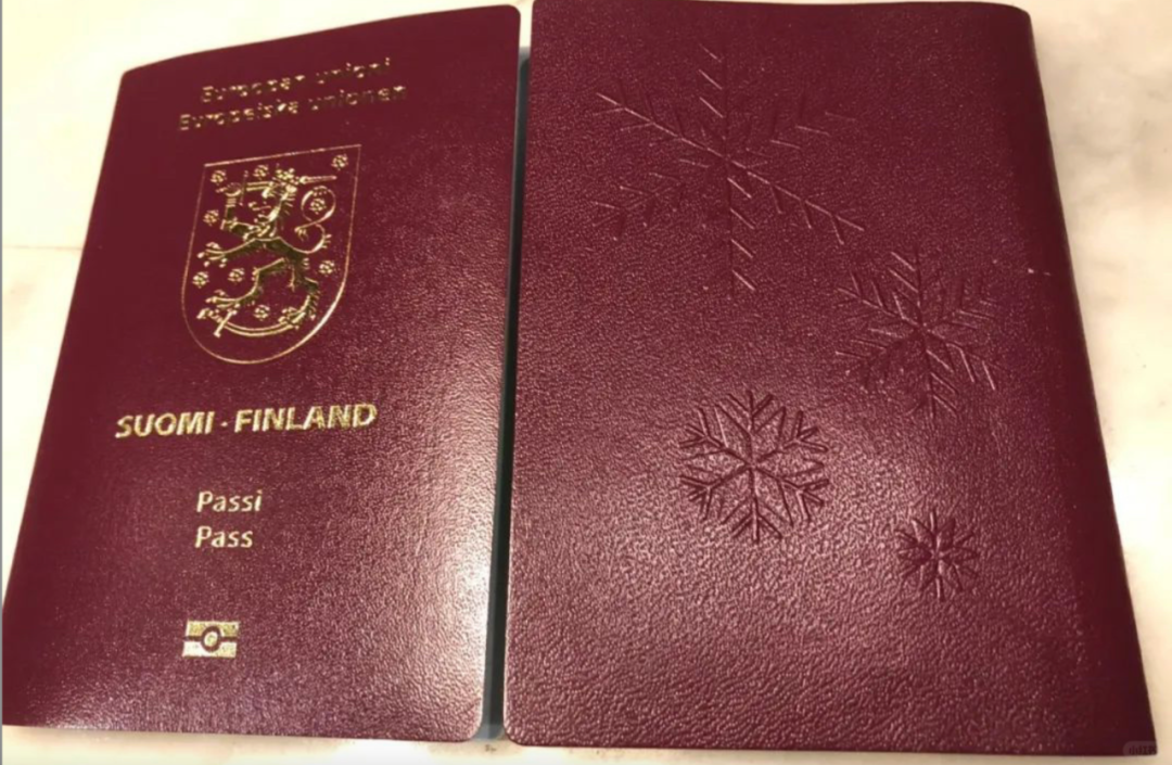 另一本红色的护照,即便视频没有对焦到,也隐约看到护照页上印有花纹。有网友猜测,这或许是芬兰的护照。