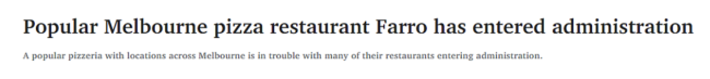Farro Pizzeria是一家专营有机斯佩耳特小麦披萨的连锁餐厅,在墨尔本有七家分店,目前已有五家被任命了破产管理人。