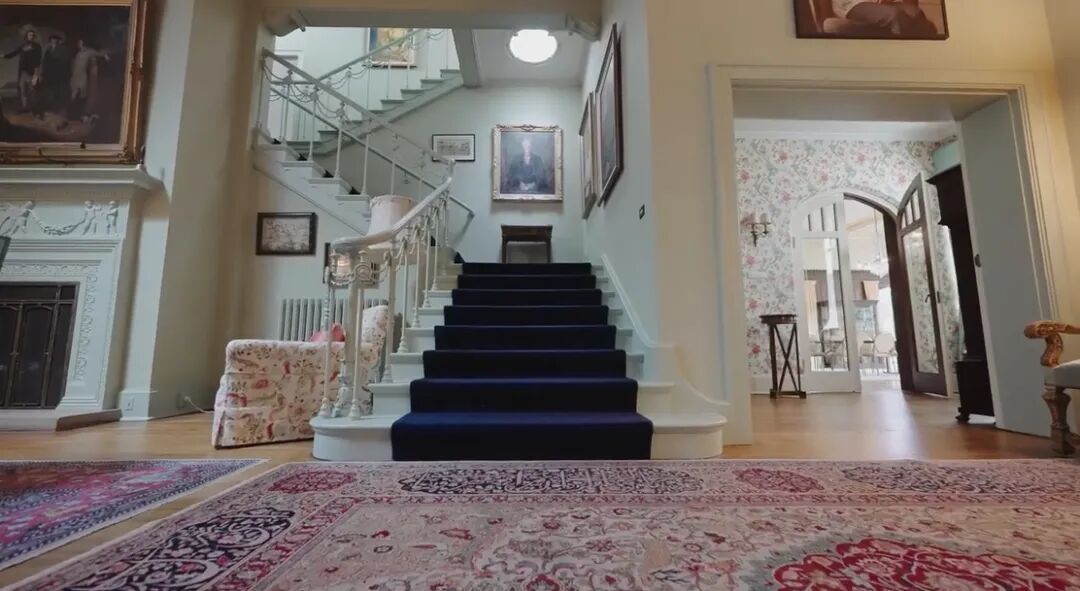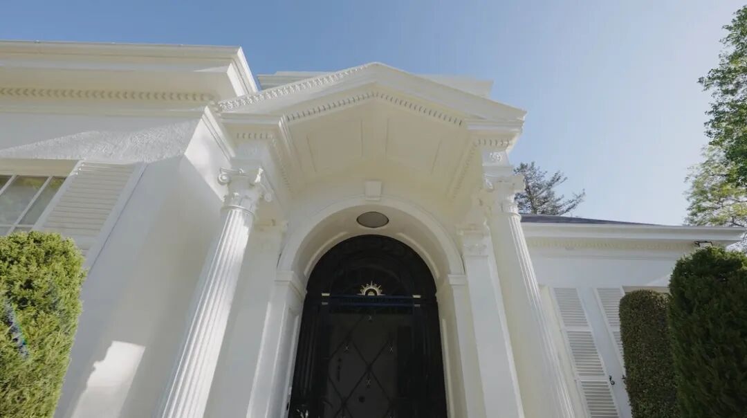 庄园的门厅由洁白的大理石建造,衬托得这座豪宅更加美轮美奂。