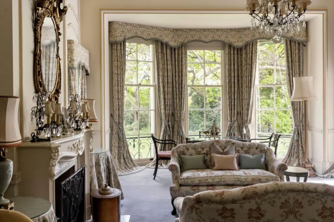 另外还有接待室、起居室、会客室、图书馆和正式餐厅,以及一间通往花园的法式舞厅。