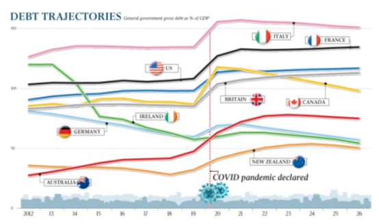 只是在2019年至2022年期间,根据国际货币基金组织(IMF)的数据,澳洲公共债务从2019到2022年三年内的增长速度前所未有,债务占GDP的增幅达到了29.5%,超过了IMF研究的35个主要发达国家中的任何一个,但其实还是因为澳洲本身的基数较低的原因。