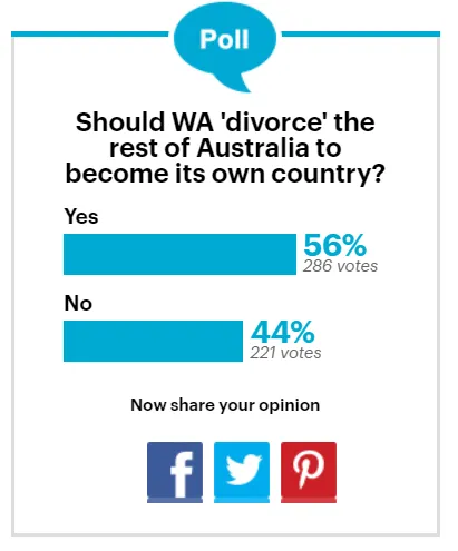 根据《每日邮报》的一项民意调查,当时56%的参与者支持西澳脱离澳大利亚成为独立国家。