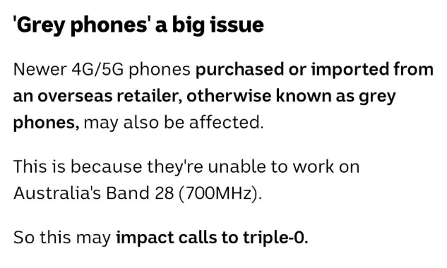 ——一些与700兆赫兹(频段28)的澳洲主要4G频率不兼容的设备,当没有了3G网络时,就无法在澳洲联网了。