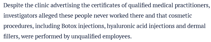 HCCC指出,这家美容诊所未能遵守防感染规定、使用过期药品,且涉嫌虚假宣传——诊所宣称员工持有相关医学证书,但调查中发现,