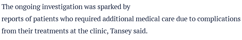 据报道称,该诊所的经营者名为Tommy Jodlovich——他已被禁止从业,而且有欺诈前科。