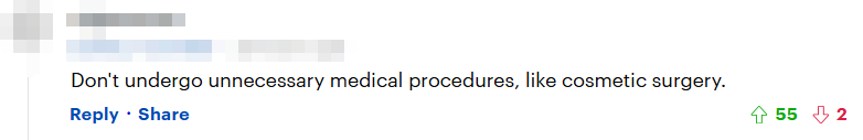 “建议不要进行不必要的医疗手术,比如整容手术。”