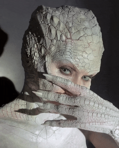 这次,金姐特地请来变装皇后兼特技化妆大师Alexis Stone,为她量身打造了“白化鳄鱼”的造型。