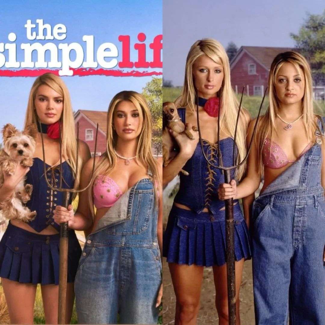 肯豆又一人分饰两角,和好闺蜜——刚刚生完孩子的海莉·比伯cos真人秀节目《简单生活》中希尔顿和妮可·里奇这对好友。