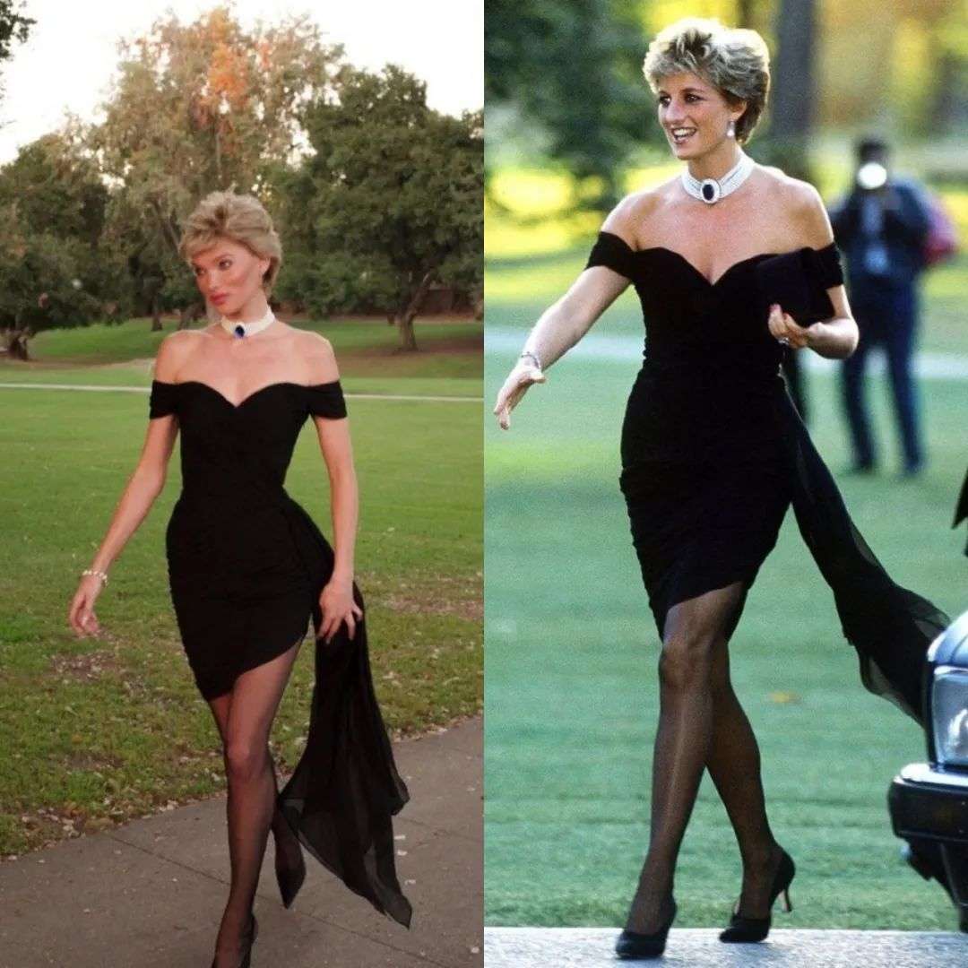 被一致认为满分造型的还有超模Elsa Hosk身穿“复仇小黑裙”化身戴安娜王妃。