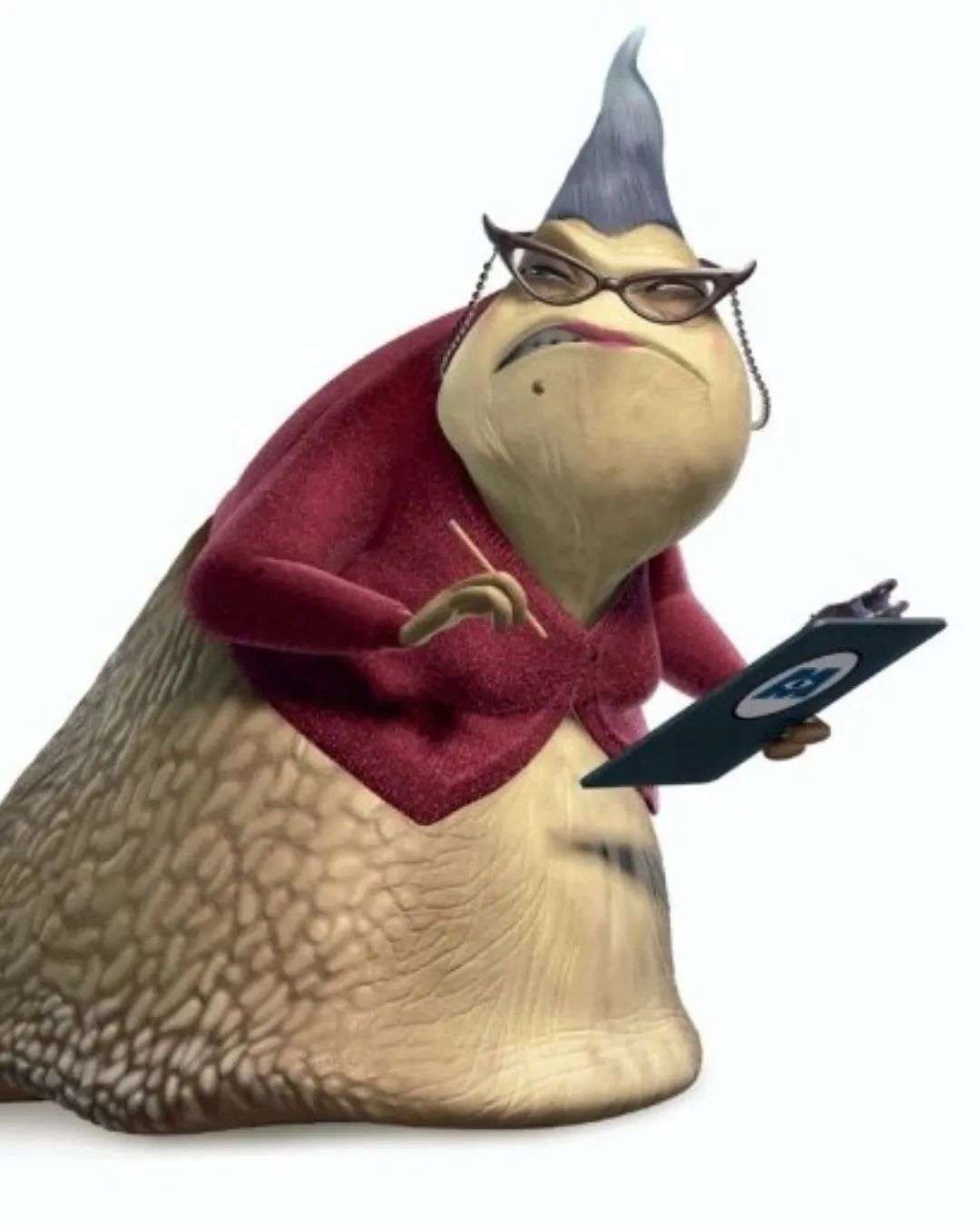 演员Amelia Dimoldenberg也很用心,她打扮成《怪兽公司》的书记员Roz,发型、道具和背景,一比一还原,看得出来是花时间准备了。