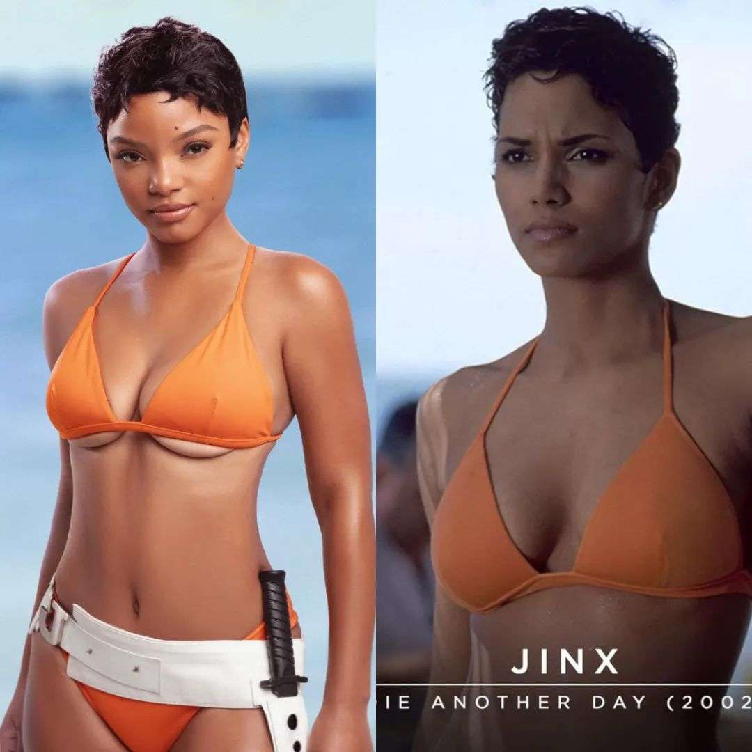 先是小美人鱼哈莉·贝利穿上比基尼,简单复刻了她在电影《择日而亡》扮演的角色Jinx。