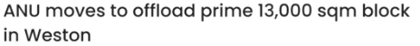 最近ANU还被迫做出决定,将其位于Weston的一块黄金地段挂牌出售。