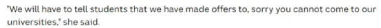 当时,澳洲八校联盟负责人Vicki Thomson就表示,各院校将不得不取消已经发出的录取通知。