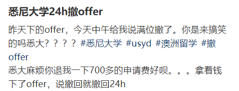 这还没过几天,UNSW居然又放了一个新的大招——撤回所有未接受的offer!