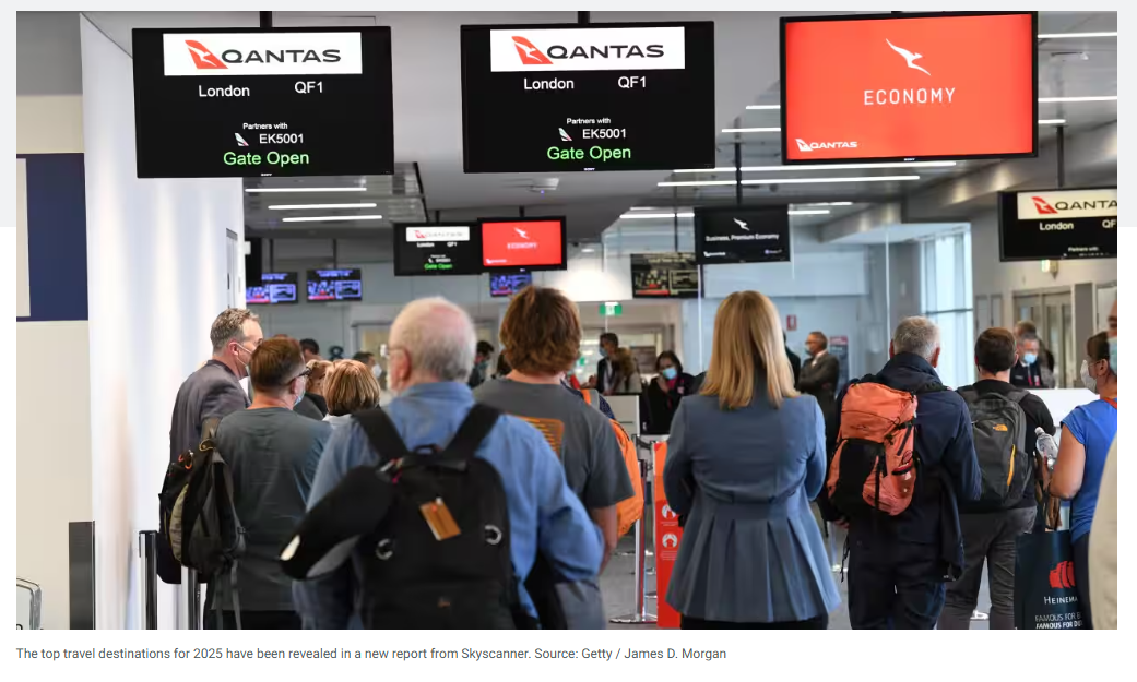 对于澳大利亚游客来说,日本一直位居首选。多年来,澳人纷纷前往东京、京都和大阪品尝美味的日本料理、欣赏樱花、泡温泉,当然还有购物。但在2025年,澳大利亚人似乎将目光投向了不同的目的地,令人惊讶的新热门目的地成为旅游热点。据旅游网站Skyscanner的《2025年旅游趋势》报告显示,明年澳大利亚人最想去的旅游目的地是柬埔寨的Siem Reap,那里有著名的吴哥窟。其他东南亚地区也位居榜首,其中泰国Krabi位居第二。Krabi毗邻热门的普吉岛,以海滩和岛屿而闻名。对于澳大利亚游客来说,海岛生活似乎是最重要的旅行主题,菲律宾的Busuanga位居第三,以潜水而闻名。韩国的Daegu距离首尔仅1.5小时车程,位居第四。Daegu拥有丰富的艺术和古代建筑,文化底蕴深厚。澳大利亚人还愿意离家更远一些,芬兰的Rovaniemi成为第五大热门目的地。Rovaniemi是圣诞老人的故乡,也是观赏北极光的理想之地。排名前十的还有秘鲁的Cusco、挪威的Tromsø、哈萨克斯坦的Almaty以及印度尼西亚的Labuan Bajo和Yogyakarta。这些结果基于2024年1月1日至2024年6月30日期间与2023年同期相比航班搜索量增长最大的地点。根据该报告,泰国在2025年最具性价比的旅游目的地中名列榜首。Krabi的机票价格下降了34%,这使得它成为夏季假期的理想目的地。北爱尔兰Belfast的机票价格下降了26%,而澳大利亚飞往Madrid、Budapest和冲绳的机票价格也有所下降。该报告还确定了影响澳大利亚人选择目的地的首要体验和因素。最大的因素是天气(66%),其次是景点(65%)、美食(63%)和文化(59%)。尽管面临生活成本危机,但旅行仍是澳大利亚人的优先事项,43%的人计划在2025年增加旅行次数。报告显示,36%的澳大利亚人愿意在机票上多花钱,31%的人愿意在住宿上多花钱,14%的人计划增加租车费用。但在选择目的地时,成本仍然是首要考虑因素。决定度假目的地的首要因素是汇率和汇率走势(32%)、旅游景点费用(32%)和签证费用(17%)。2025年,近三分之一的澳大利亚游客计划观看体育赛事。吸引游客观星和日食的天文旅游也呈上升趋势。约58%的人想看北极光,39%的人想去天文台,38%的人希望观看日食或月食。虽然假期以前可能被视为放松身心的地方,但现在越来越多的澳大利亚人将健康和幸福融入到旅行中,63%的旅行者注重健康。超过一半(59%)的旅行者认为艺术和文化是选择度假目的地的重要因素之一。游戏玩家也将自己的爱好融入旅行中,31%的旅行者会根据自己喜爱的电子游戏中的地点来预订海外旅行。许多人还专门为参加游戏大会而旅行,10%的人会寻找配备游戏机的酒店。72%的受访者表示,度假时喜欢游览花园,与大自然亲密接触是旅行的一大原因。