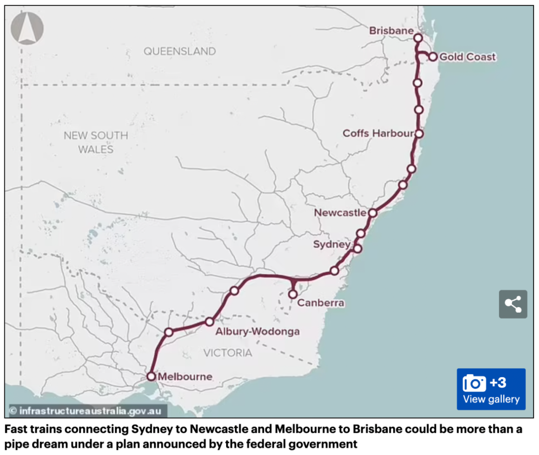 这一备受期待的东海岸高铁项目,将连接布里斯班、悉尼、堪培拉、墨尔本以及沿线的区域城市。