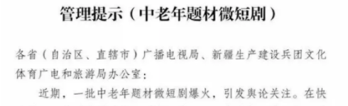 提示签发单位写着“广电总局网络视听司”,红星资本局通过多个渠道核实,上述管理提示属实。这也引发了短剧业内对中老年题材创作红线的讨论。
