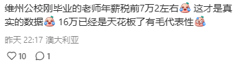 “这远超过平均水平,我是高中的数学和科学老师,我的工资是 8.4 万澳元。”一位老师分享道。