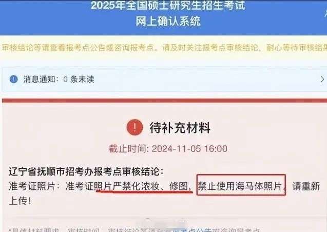 缘由是在2025年考研网上报名系统中,辽宁抚顺报考点、中国传媒大学报考点或禁止或不建议使用海马体照片作为准考证照片。