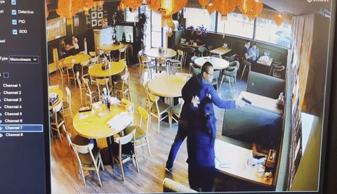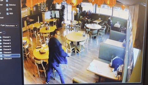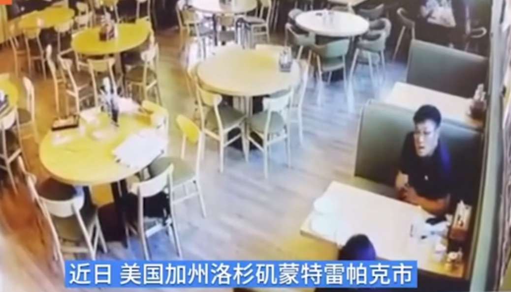 从案发后当地媒体发布的一段现场监控视频中可以看到,当时一男一女两名华人刚刚落座烧烤店内,准备就餐。