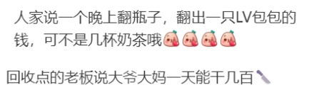 据其描述,自己听说过有人会翻垃圾桶,然后把瓶子都拿出去卖掉,但从未遇到过。
