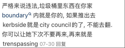正如一些华人回复中所说,“翻垃圾”严格来说就是违法行为。