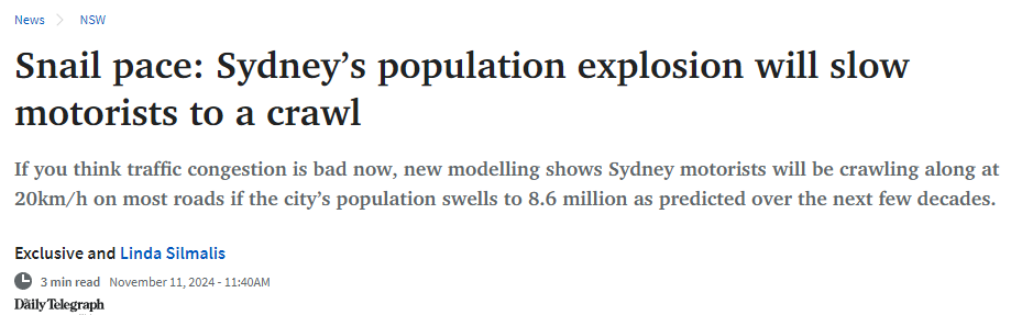 悉尼人口暴增,未来交通拥堵加剧