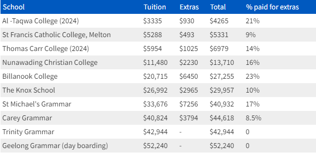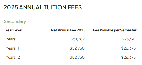 与此同时,Timbertop 校区和高中的学费和全日制寄宿费上涨了 4260 澳元。