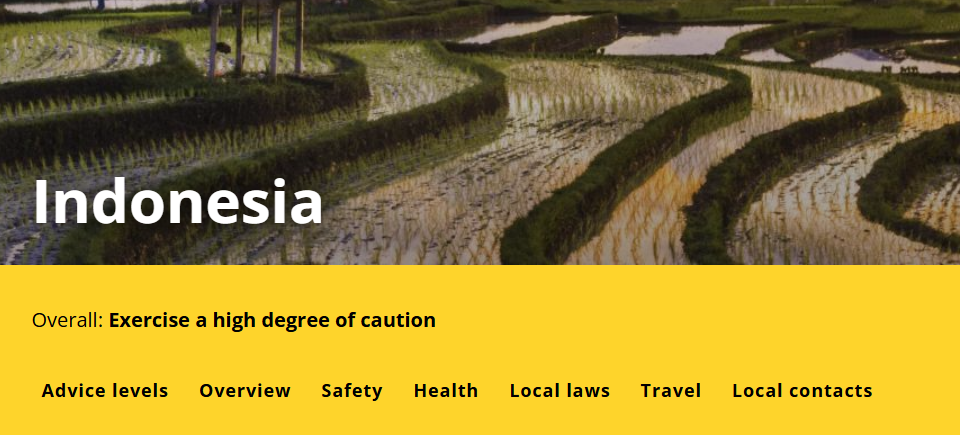 澳洲政府的SmartTravel官网上其实几天前就已经发布了旅行警告:前往印尼需谨慎!