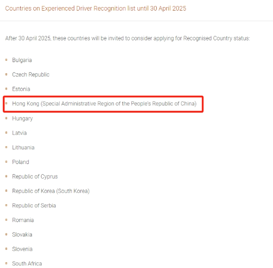 保加利亚、捷克共和国、爱沙尼亚、中国香港、匈牙利、韩国、中国台湾、拉脱维亚等想要更换澳洲的full licence