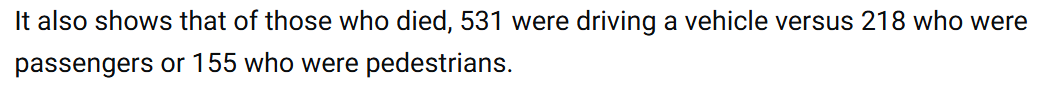 这个统计数据是今年7月份公布的,上一财政年澳洲共有1310人死于交通事故。
