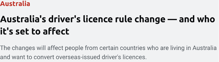 建议未持有澳洲本地驾照,且需要长期居住在澳的小伙伴们,及时更换驾照。
