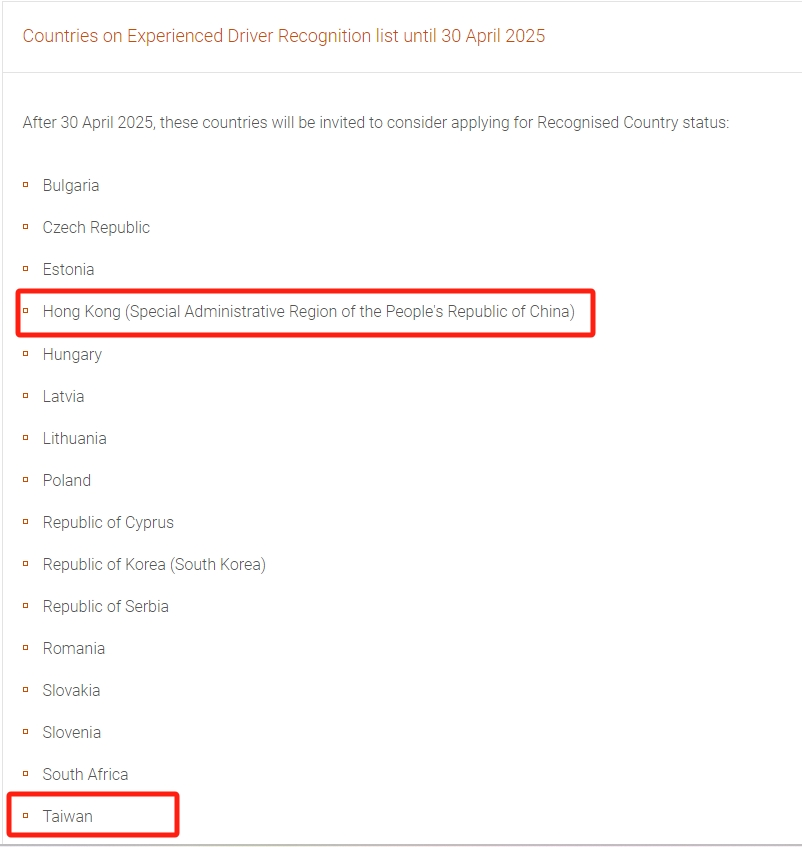 负责管理国际驾照的机构Austroads更新了部分流程,从2025年4月30日起,“经验司机认可身份”名单将被取消。
