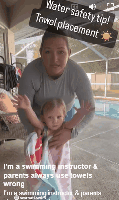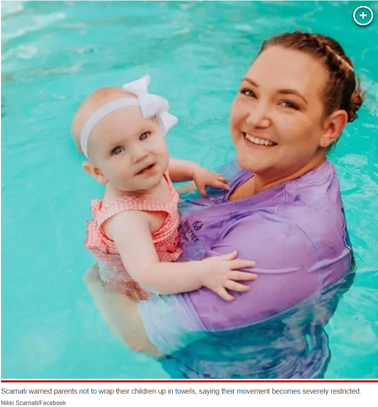 专业的游泳教练Nikki Scarnati就在一个视频中向父母们分享了一个重要的给孩子“裹毛巾技巧”。