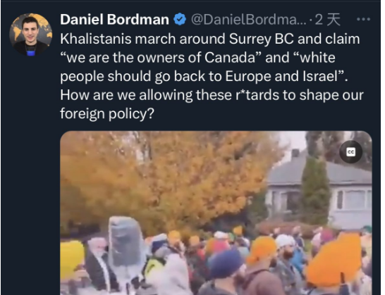 配文:卡里斯坦人在BC素里示威游行,还说自己是加拿大主人,让白人滚回欧洲!我们怎么会让这些人进来?!