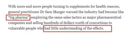 对此,全科医生Sam Manger博士表示,保健品行业已经演变成了一个“大型制药公司”,大家用同样的销售策略向那些对功效一无所知的消费者兜售他们的产品。