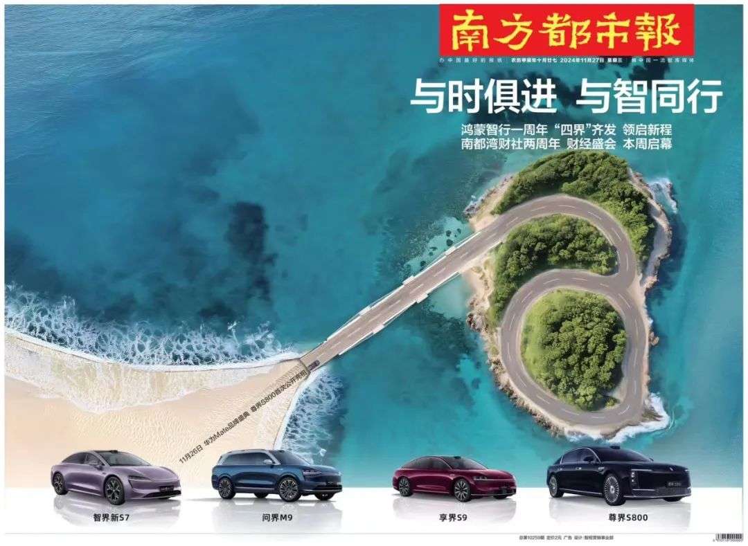 在鸿蒙智行一周年之际,问界、智界、享界和尊界,“四界”齐发,鸿蒙智行完成了从中高端到超高端的全方位布局,引领中国汽车品牌向更高价值维度迈进。南都智媒携手鸿蒙智行“与时俱进 与智同行”,致敬一路领跑的中国智能电动汽车时代,共同见证百年汽车工业的大变局。