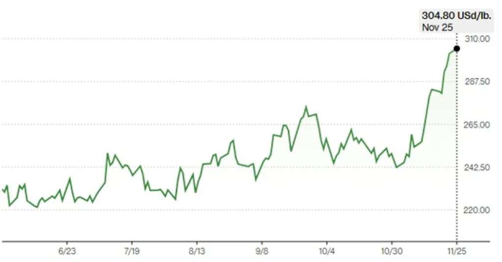 受恶劣天气以及供应链的影响,咖啡豆价格在过去1年间持续飙升。本周,阿拉比卡咖啡豆的期货价格,飙升至1977年3月以来的最高位,为每磅3.05美元(即每453克4.69澳元)。