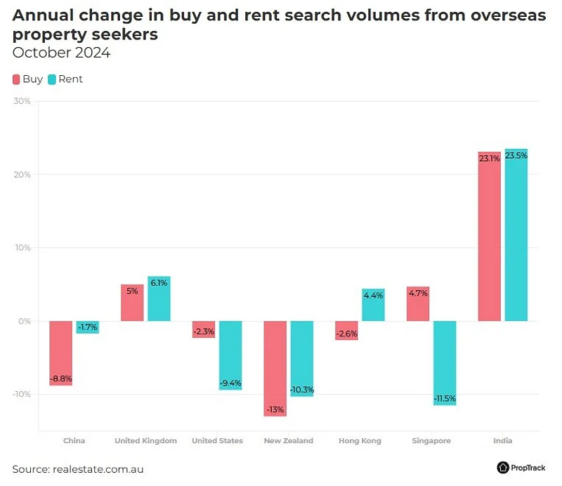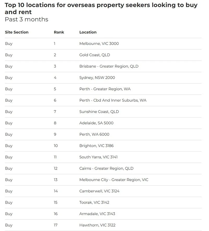 搜索墨尔本房产最多的国家包括美国、新西兰和英国,这些国家的购房者主要被这里与本国相似的生活方式、语言和社会基础设施所吸引。